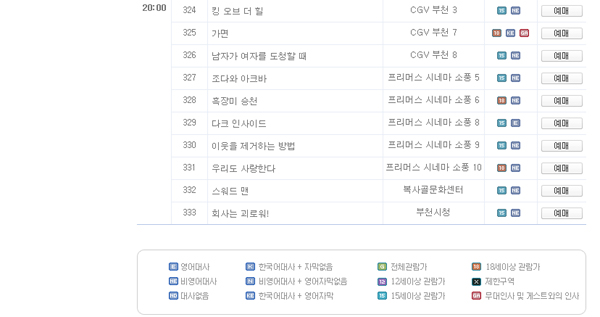 ▲ 부천영화제 예매사이트. 자막여부 등 영화와 관련된 각종 정보를 기호로 보기쉽게 삽입해 놓았으나 장애인을 위한 편의제공은 전혀 고려돼 있지 않았다.