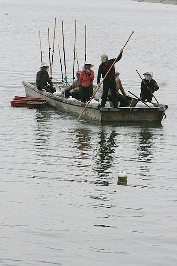 오후 2시쯤 작업이 끝났다. 배 위에 재첩을 옮겨 싣고 선착장으로 돌아왔다. 선착장에는 또 다른 마을 사람들이 기다리고 있다. 돌이나 빈 껍데기를 골라내는 일을 도와주러 나온 분들이다.