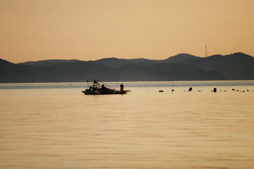 배가 멈춘 곳은 금일도와 약산도의 가운데 바다. ‘평화로운 섬’이라는 것을 강조라도 하려는 듯 바다는 파도 하나 없이 고요하기만 하다. 물빛, 그 속으로 뛰어들고 싶을 만큼 맑은 바다다.