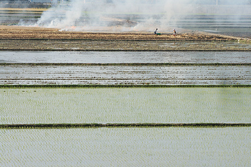 | ▲ 일모작 모내기 먼저 끝내고, 보리 베낸 이모작 논에 보릿대를 태우며 모내기를 준비하고 있다. ⓒ 김도수 | ||