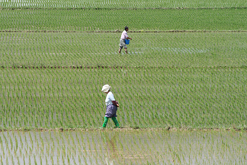 | ▲ 모내기 끝난 논에 비료를 뿌리고 있다. ⓒ 김도수 | ||