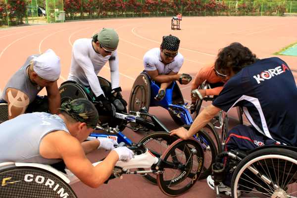 탄소섬유로 만들어진 이 휠체어는 뒷바퀴 사이로 다리를 집어넣도록 디자인 돼 몸을 앞으로 최대한 숙여 탈 수 있게 제작돼 바람의 저항을 최대한 받지 않고 달릴 수 있도록 설계돼 있다. 대당 700만원~1천만 원에 육박한다니 부담스러운 가격이지만, 개인이 알아서 구입해야 한다고. 비장애인 체육선수들이야 소속팀 등에서 지원받아 구입하지만 언감생심, 모든 것을 선수 스스로 알아서 준비하고 챙겨야 한다.