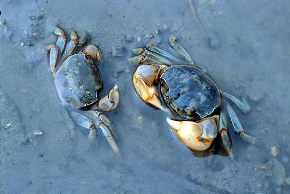 자게, 밤게 등은 갯벌을 쏘다니다가 위험을 느끼면 펄을 헤집고 들어가 자기 몸을 숨긴다. 꽃게나 그물무늬금게, 범게 등은 헤엄을 칠 수 있어 자게나 밤게에 비해 훨씬 자유로운 놈들이다. 그러나 꽃게 외에는 헤엄 실력이 자기 몸을 안전하게 보호할 정도는 아닌 듯..., 이놈들도 위험을 느끼면 재빠르게 모래를 헤집고 그 속에 숨는다. 헤엄을 정말 잘 치는 놈은 꽃게다. 이놈은 헤엄을 어찌나 잘 치는지 먼 바다까지 헤엄쳐 다닌다.