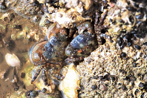 그런데 하나가 더 있다. 바로 똘짱게다. 똘짱게는 바닷가 바위웅덩이 지역에서 사는 풀게, 무늬발게, 납작게 등을 통칭한 이름인데, 돌짱 밑이나 바위틈새를 은폐·엄폐 삼아 살기에 붙여진 이름이리라. 몸의 크기가 2~3cm 정도로 작은 게다.