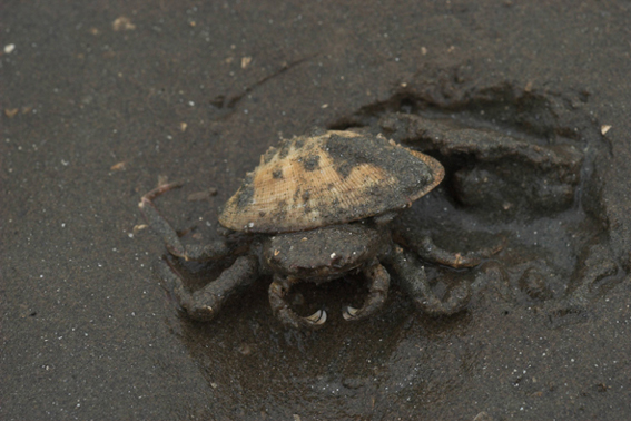 그런데, 방랑시인 김삿갓처럼 아예 집을 등에 지고 갯벌을 방랑하는 놈이 있다. 바로 조개치레란 놈이다. 조개치레는 주로 모래갯벌에 사는데 우리나라 연안에는 2종이 있다. 하나는 등면이 비교적 매끄러운 동해안의 조개치레이고, 또 하나는 등면에 작은 돌기들이 많이 나있는 서해안의 옴조개치레이다.
