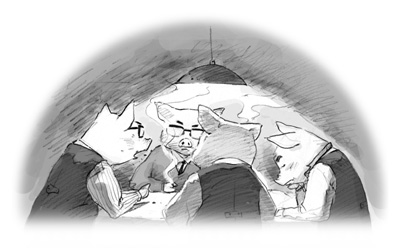 머리를 짧게 자르고 날카로운 눈매를 가진 젊은 비서가 서류를 챙겨들고 밖으로 나가자 실내는 다시 팽팽한 긴장에 휩싸였다. 탁자를 사이에 두고 다섯 명이 앉아 있었다. 중앙에 막 담배를 입에 문 장이 앉아 있었는데, 그는 이 날 모임의 주선자였고 전직은 군 장성이었다. 장의 오른쪽에 전 국회의원 이가 피곤한지 안경을 벗어들고 손등으로 눈을 훔치고 있었다. 그는 박정희 때부터 전두환 때까지 내리 5선을 기록한 옛 여권의 실세였다. 이의 옆에 김이 눈길을 허공에 둔 채 미동도 하지 않고 앉아 있었다. 그는 이름만 대면 누구나 아는 재벌의 오너였다. 김의 맞은편에 정이 팔짱을 낀 채 지그시 눈을 감고 앉아 있었다. 그는 이북 출신으로 내무장관과 총무처 장관을 지낸 전직 관료였다. 마지막, 손가락으로 탁자를 탁탁 치며 골똘히 자기만의 생각에 빠져있는 박은 역시 이름만 대면 초등학생도 아는 신문사의 논설위원으로 재직하고 있었다.