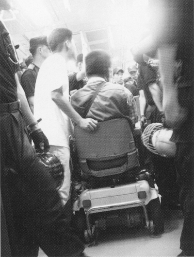 <찍힘의 대상에서 찍음의 주체로> 이제까지 장애인 사진전이라면 대게 ‘장애인을 찍은’ 사진전이었다. 그러나 여기 중증 장애우 다섯 명이 모여 보여준 전시회는 ‘장애인’이 아닌 ‘장애인의 감성을 통해 바라본 세상’을 보여주는 전시회였다. ‘도전하는 사람들’ 일명 ‘도사’ 모임을 처음 제안한 장애우권익문제연구소 이현준(39) 간사는 근육병의 일종으로 팔을 들 수 없고 전동휠체어에 의지하지 않고는 몸을 움직이기 쉽지 않은 중증장애인이다. 그는 지난해 7월 일본에 갔다가 우연히 카메라 하나를 발견하고 ‘찍사’ 대열에 합류하게 되었다. 눈에 직접 갖다대고 보지 않아도 무릎에 올려놓은 채 LCD 모니터를 통해 거의 모든 각도로 사진을 찍을 수 있는 카메라. 그는 휠체어에 부착하는 보조도구가 필요하긴 했지만 "카메라를 발견하는 순간 나도 이제 사진을 찍을 수 있겠구나 싶어 여비를 털어 당장 구입했다"고 한다.