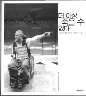 뭐 그런 식이다. 언제나 사회 속의 ‘타자’로 인식되어 갈 수 있는 길도, 그에 따른 삶도 찾아내기 어려운 나의 삶은, 그렇게 주체로 서지 못하고 남의 손과 의지에 얽혀서 ‘들려’질 수밖에 없다. 내 생각대로 움직일 수 없다는 사실이 나를 더욱 의존적인 타자로 만들고, 그런 타자들을 위해 세상은 만들어지지 않는다. 그리고 이렇게 철저히 사회로부터 배제되어, 자신의 주체적인 삶을 살지 못하는 이들 중 하나가 2001년 오이도 역에서 사망했다. 그리고 이제 이러한 삶을 공유한 이들, 바로 이 땅의 장애인들은 외칠 수밖에 없게 되었다. “더 이상 죽을 수 없다”고.