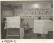 이어진 "나는 반차별활동가"시간에는 장애차별을 내가 어떻게 인식하고 활동할 것인가를 조별로 구상해서 발표하였다. 모두들 어찌나 열심히 토론하고 성실히 임하던지 스텝들이 감동받았다고 한다.
