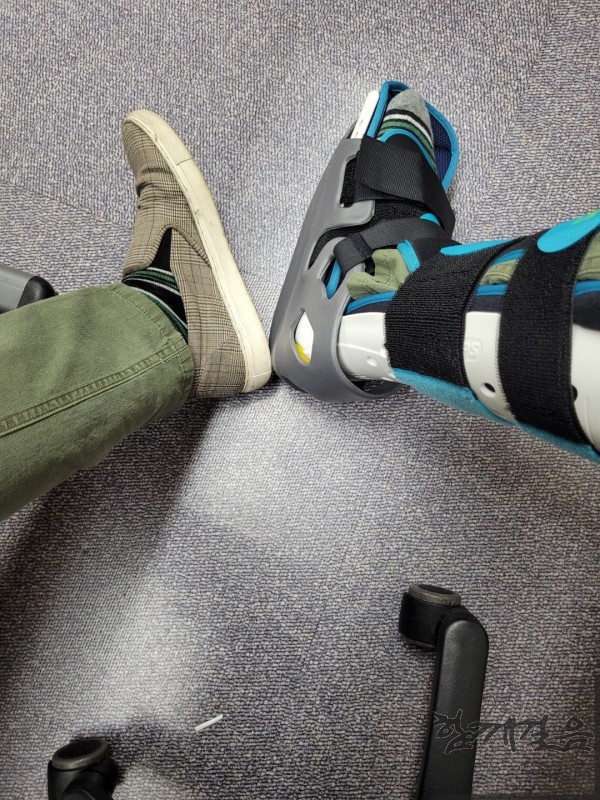 개인적인 생각이지만, 전 반깁스가 진짜 멋있었어요. 그냥 반깁스만 한 게 아니라, 반깁스한 발목에 충격이 가지 않도록 반깁스 보호대를 착용했거든요. 이 보호대가 마치 축구할 때 착용하는 무릎 보호대 같은 느낌이라서 멋있게 느껴졌던 거죠.
