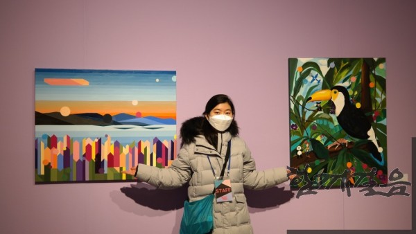 ▲ 자신의 작품 앞에 선 정영은 작가의 모습.