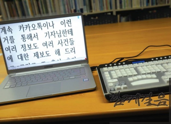 한 예로, 제가 취재원을 만나 인터뷰를 하는데 깜짝 놀란 적이 있었어요. 근로지원인으로부터 문자통역을 받고 있었는데, 취재원이 하는 말이 노트북 화면에 계속 입력되고 있으니까 전 화면을 집중해서 보고 있었거든요. 취재원의 얼굴을 제대로 보지 못하고 있었는데, 문득 근로지원인이 이렇게 타이핑을 쳤어요.