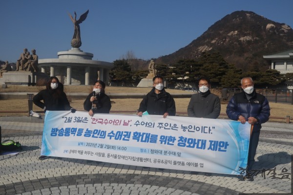 그래서 ‘한국수어의 날’을 맞이하여 어제(2월 2일)는 농인들이 방송에서 겪는 어려움을 해결해달라는 내용의 요구서를 청와대에 제출했습니다. 요구서의 내용에는 ▲방송 수어통역이 가리는 문제 해결, ▲현행 5%의 수어통역비율 상향조정, ▲방송통역의 창 확대, ▲방송수어통역에 농인 통역사들이 참여를 할 수 있도록 방송 수어통역 할당제 도입 등을 정책적으로 풀어달라는 것입니다.