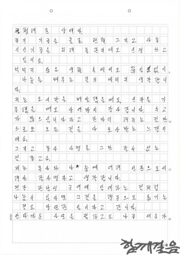 넉넉지 않은 생활 속에서도 끊임없이 나눔을 베푸는 것은 제 힘의 에너지라 생각합니다.