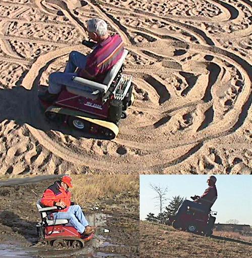 몇 가지 대표적인 친구들을 살펴보면 탱크 같은 전동휠체어가 있다. 탱크라는 별칭에서 느껴지는 것처럼 뭔가 굉장히 튼튼할 것 같은, 강하게 밀어붙이고, 못 갈 곳이 없을 것 같은 제품이다. 이 제품의 가장 특징적인 부분은 전동휠체어에 바퀴 대신 다른 장치가 붙어 있다는 점이다. 어떤 장치가 붙어 있기에 험한 길을 달릴 수가 있을까? 바로 양쪽에 바퀴 대신 탱크나 굴착기 같은 중장비에 사용되는 캐터필러, 즉 무한궤도가 붙어 있다. 덕분에 탱크나 중장비처럼 모래사장은 물론, 진흙 길, 울퉁불퉁한 산길, 심지어 겨울에 눈길까지 바닥 조건이 어떤 곳이든 거침없이 달릴 수 있다. 10㎝ 이하의 장애물이나 턱은 모두 가뿐히 넘어서 건널 수도 있고, 생긴 모습도 작은 불도저처럼 생겨서 어디든지 헤치고 나갈 수 있을 것 같은 모습이다. 다른 전동휠체어들과 마찬가지로 조이스틱을 이용해서 조종하기 때문에 일반적인 전동휠체어를 운전할 수 있는 장애인이라면 충분히 독립적으로 운전해서 적극적인 야외활동을 즐길 수 있다.