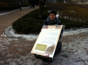 추운 겨울, 장애인의 자립생활에 관심을 둬주셔서 감사드리며 시장님께 거는 기대가 큽니다. 저는 가평 꽃동네라는 생활시설에서 8년간 살다가 2010년 11월에 서울 송파구로 자립하러 나온 전신마비장애인 송용헌입니다.