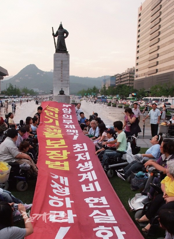뇌성마비 중증여성장애인 최옥란 열사가 기초법 개정을 위한 명동성당 농성에 들어가며 했던 말이다. 사실상 유언이 되어버린 이 말은 IMF 외환위기에 대응하여 만들어진 국민기초생활보장제도(이하 기초법)의 문제점과 당시 정부의 생산적 복지의 허구성을 역설적으로 드러낸다. 열사가 숨진 뒤 8년이 지나고, 법이 시행된 지 11년이 흘렀지만, 달라진 건 무엇인가?