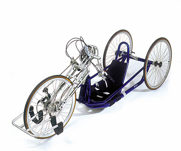 안장에는 의자처럼 등받이가 있어서 뒤로 기댈 수 있게 되어 있고 앞쪽에는 핸들이 연결된 커다란 앞바퀴가 달려 있고, 의자 뒤쪽으로 좌우 양쪽의 뒷바퀴가 달린 세발자전거 모양이다. 페달은 핸들에 달려 있다. 앉은 상태에서 팔을 앞으로 내밀면 닿는 부분에 핸들이 달려 있는데, 일반적인 자전거의 핸들과는 다르게 두 손으로 손잡이를 쥐고 팔을 움직이면 돌아갈 수 있게 되어 있는 페달이 손잡이와 연결되어 있다.