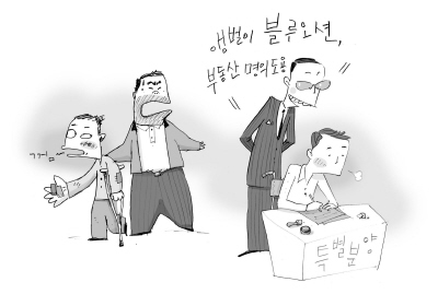 장애우 명의를 도용한 사기 사건의 끝은 과연 어디쯤일까. 장애우 명의를 빌려 엘피지 할인을 받고, 자동차 특소세를 면제받고, 그러다가 가짜 장애우까지 속출하더니. 이번에는 장애우 명의를 도용해 주택분양시장을 교란시키는 사기 사건까지 발생해 주의를 요하게 만들고 있다.