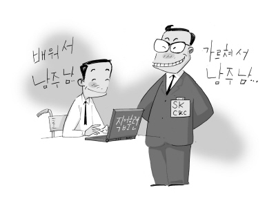 하도 쥐어짜듯이 이뤄지는 장애우 고용에 신물이 나서일까. SK C&C가 거액을 기부해 교육원을 개소했다는 사실보다. 이 회사가 훈련 후 고용을 약속했다는 점이 더 신선하게 다가온다. 이런 고용 형태야말로 바람직한 장애우 고용의 모델인 것이다.