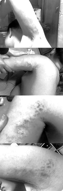 | ▲피해 직원의 누나가 한 인터넷 포털사이 트에 공개한 피해 직원의 사진. 겨드랑이 밑이 시퍼렇게 멍이 들었다. |