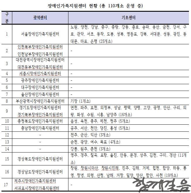 장애인가족지원센터 현황 및 실태