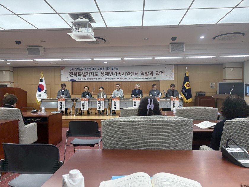 새해를 이틀 앞둔 2025년 12월 30일. 전북특별자치도의회 2층 총회의실에 같은 목적을 가진 각계각층에 있는 100여명의 사람들이 모였다. 장애인가족지원체계 구축을 위한 토론을 진행하기 위해서였다.