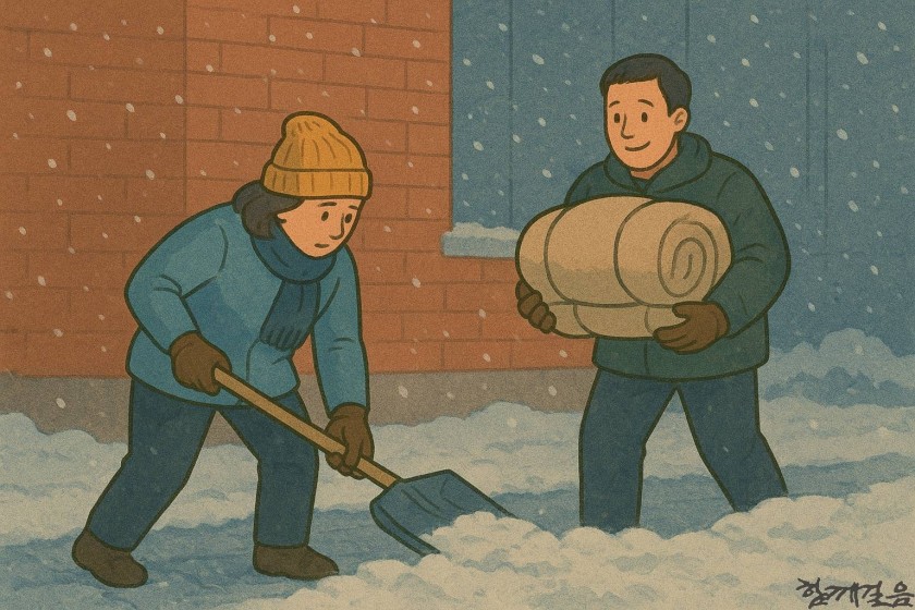 겨울이란 무엇인가. 누군가에게는 온 세상을 하얗게 덮어주는 낭만의 계절이자, 포근한 이불 속에서 귤을 까먹는 휴식의 시간일 수 있다. 함박눈이 내리면 사람들은 창밖을 보며 감탄하고, 거리는 반짝이는 조명으로 물든다. 그러나 이 아름다운 백색의 풍경 뒤편에는 전혀 다른 겨울을 맞이하는 이들이 있다.