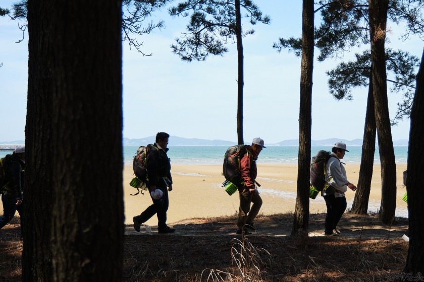발달장애인 청년들이 도전한 구간은 동서트레일 2 구간 중 일부인 약 8Km정도의 거리였다. 백사장항에서 만난 멘토(어깨동무 백패킹)도 있었다. 청포대 해수욕장 근처에 있는 별주부 야영장이 숙영지로 정해졌다.