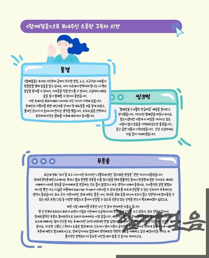 5,6월호를 읽은 독자 분들이 함께걸음으로 보내주신 소중한 의견들입니다.