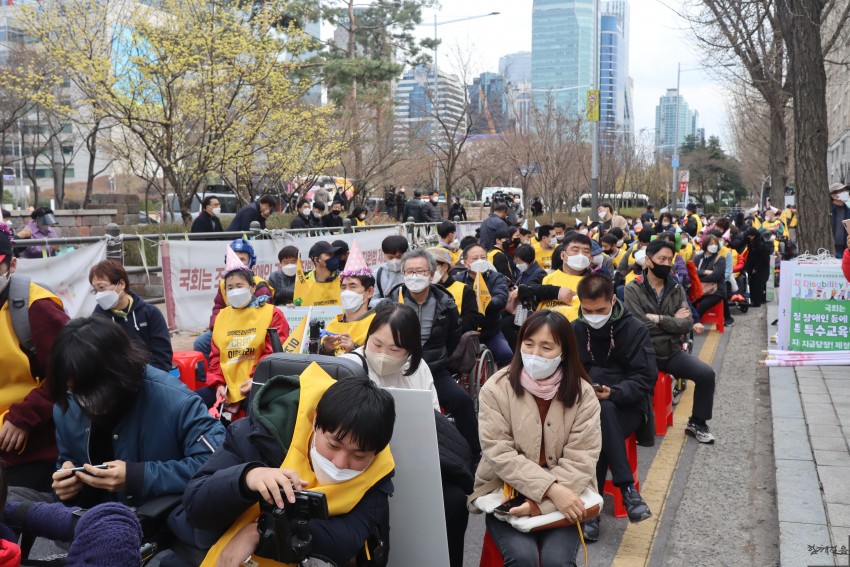 한편, 이날 행진에 참석한 전국장애인야학협회 박경석 이사장은 최근 국민의힘 이준석 당대표의 발언 논란과 관련하여 장애인 지하철 이동권 투쟁에 대한 언급을 시작으로, 이동권과 마찬가지로 장애인의 교육권도 동등하게 보장받아야 한다는 취지의 결의 발언을 이어나갔다.