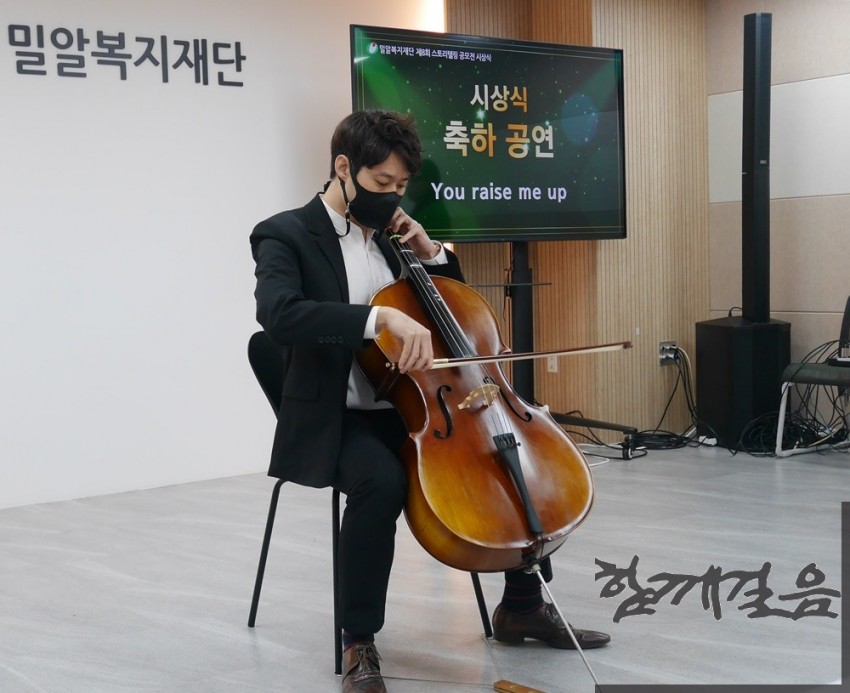이날 시상식에서는 박관찬 씨의 첼로 연주도 펼쳐졌다. 수상작에도 등장한 ‘숨어우는 바람소리’를 비롯해 ‘You raise me up’ 등 총 3곡을 연주했다. 특히 박 씨는 시상식에 초대한 부모님을 위해 깜짝 헌정곡을 바쳐 감동을 더했다.