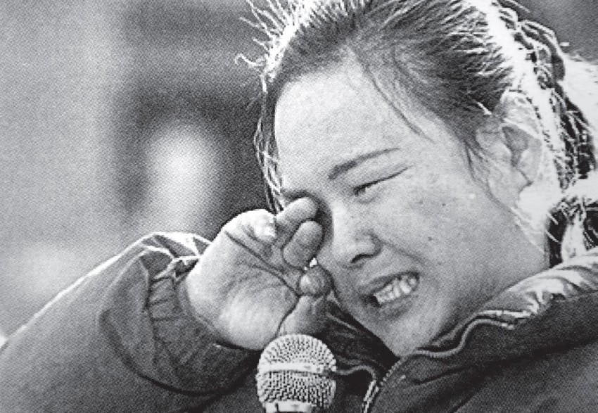 ↑ 지난해 12월 세종로청사 부근에서 자신의 고통스런 삶을 증언하며 눈물짓고 있는 故 최옥란 씨