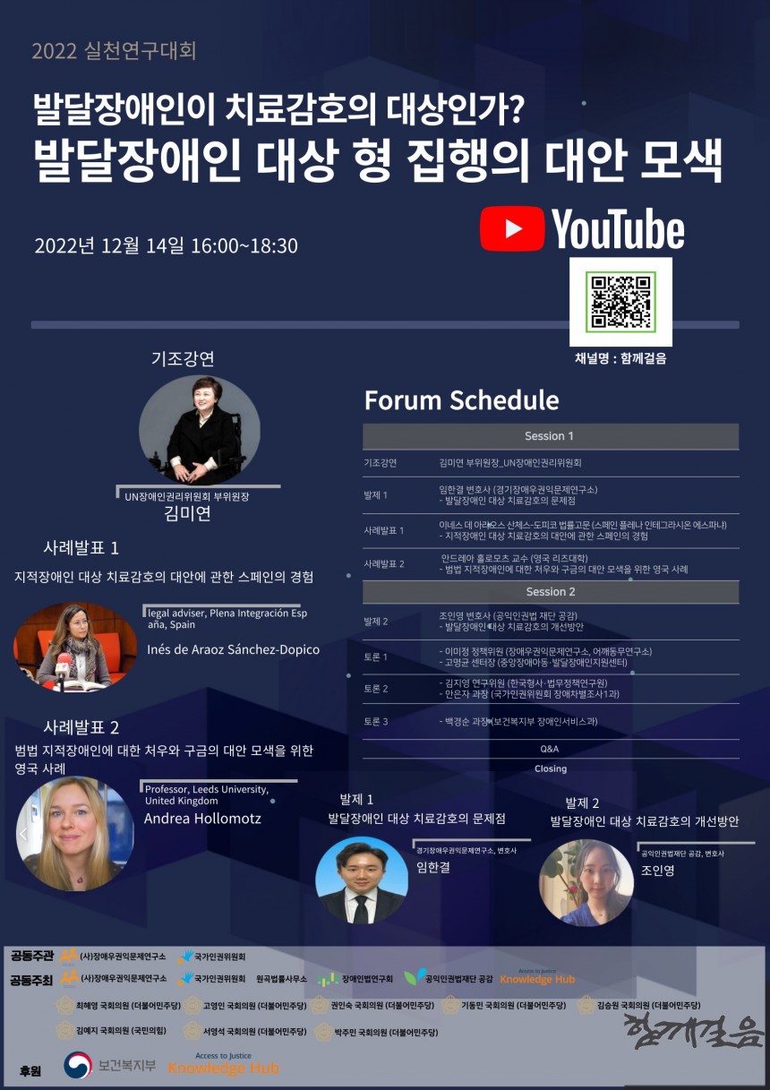 이번 국제포럼을 통해 발달장애인 대상 치료감호제도의 실효적이고 인권 친화적인 개선방안에 대한 논의의 귀추가 주목된다.