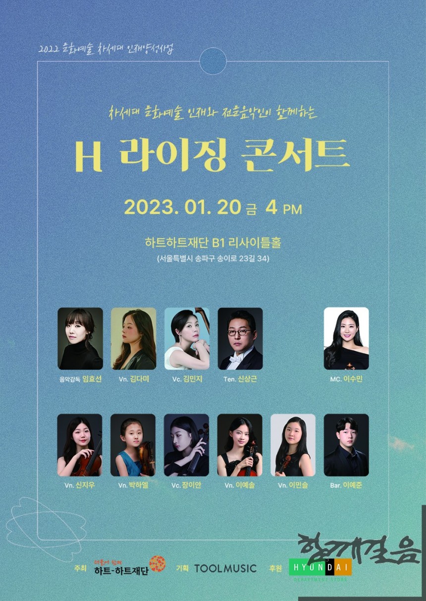 하트-하트재단과 현대백화점그룹이 차세대 문화예술 인재와 전문음악인이 함께하는 <H-라이징 콘서트>를 1월 20일 개최한다.
