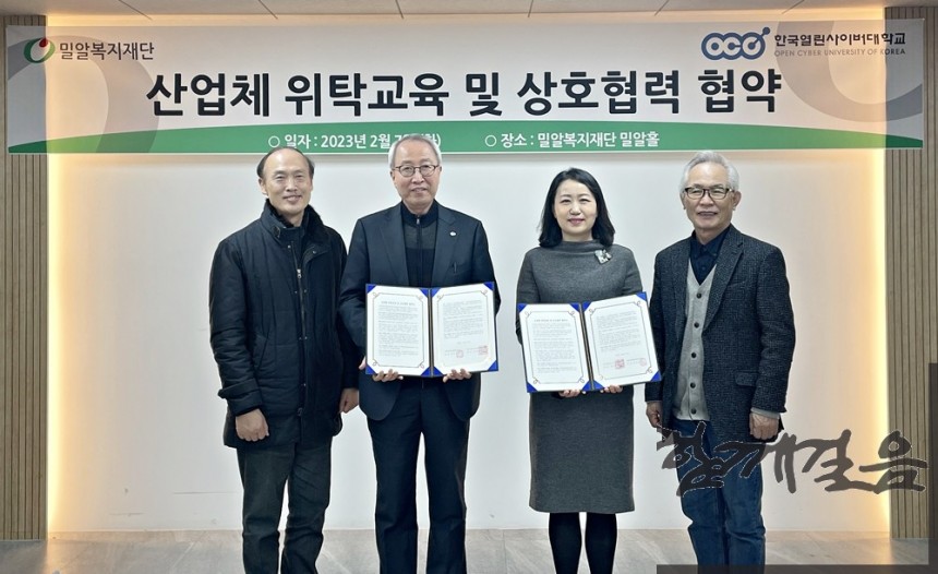 밀알복지재단(이사장 홍정길)은 한국열린사이버대학교(총장 장일홍)와 산업체 위탁교육 협약을 맺고 장애인 및 비장애인 직원들에게 교육을 제공한다고 8일(수) 밝혔다.