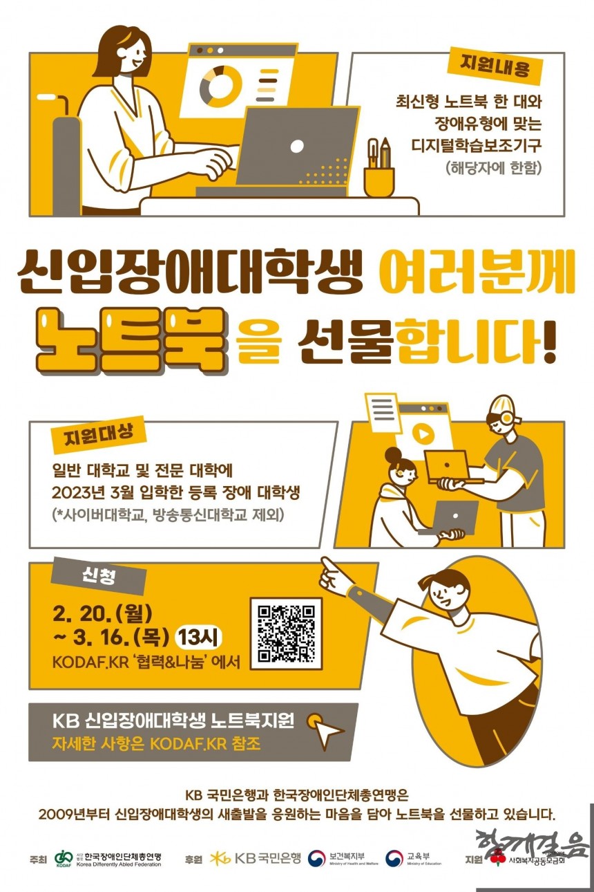 ▲ 2023 KB 신입장애대학생 노트북지원사업 홍보 포스터(제공. 한국장애인단체총연맹)