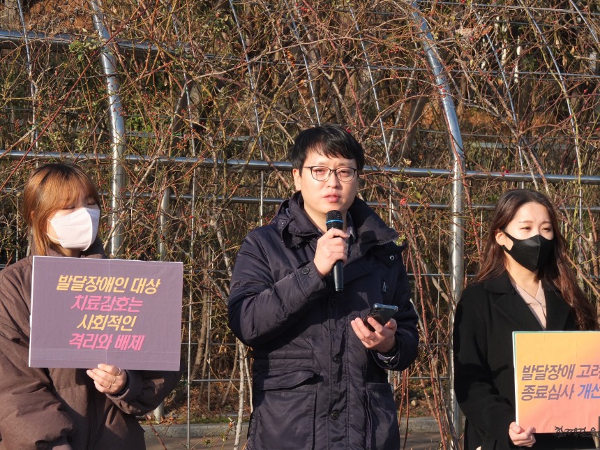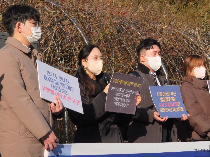 나아가, 장애우권익문제연구소 정신건강권리옹호센터 김강원 센터장은 “오늘 판결 내용을 들으며 정말 잔인하다. 사람이 사람에게 이렇게 잔인할 수 있는 가라는 생각이 들었다. 자폐성장애를 가진 변호사를 주인공으로 한 드라마가 인기를 끌었지만 지역사회에서 살아가고 있는 발달장애인의 현실은 오늘 판결에서 보여주는 것들이 대변하고 있다”며 분노와 아쉬움을 표현했다. 또,“지난 8월, 유엔장애인권리협약에 대한 정부심의에서 치료감호 문제를 언급하였고 심리사회적장애 및 지적장애를 가진 사람들이 자의적이고 강제적인 치료 특히 격리로 귀결되는 치료에 종속되지 않도록 보장하라는 권고를 내린 바 있다”고 밝히며“우리는 이 문제에 대해 좌시하지 않고 국내 구제 절차로서 구제받지 못한다고 하면 유엔에 제소하여 국제사회에 호소하겠다”며 굳은 의지를 밝혔다.