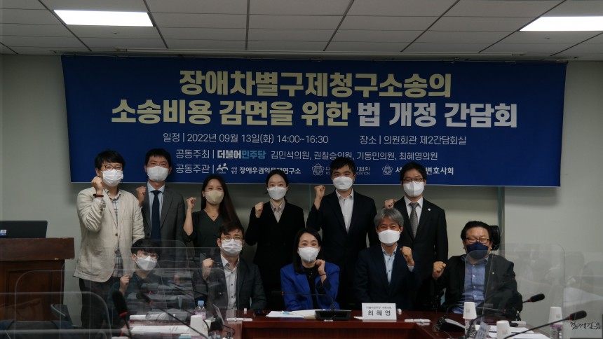 오늘(13일) 오후 2시 국회의원회관 제2간담회의실에서 ‘장애차별구제청구소송의 소송비용 감면을 위한 법 개정방안 간담회’가 개최됐다.