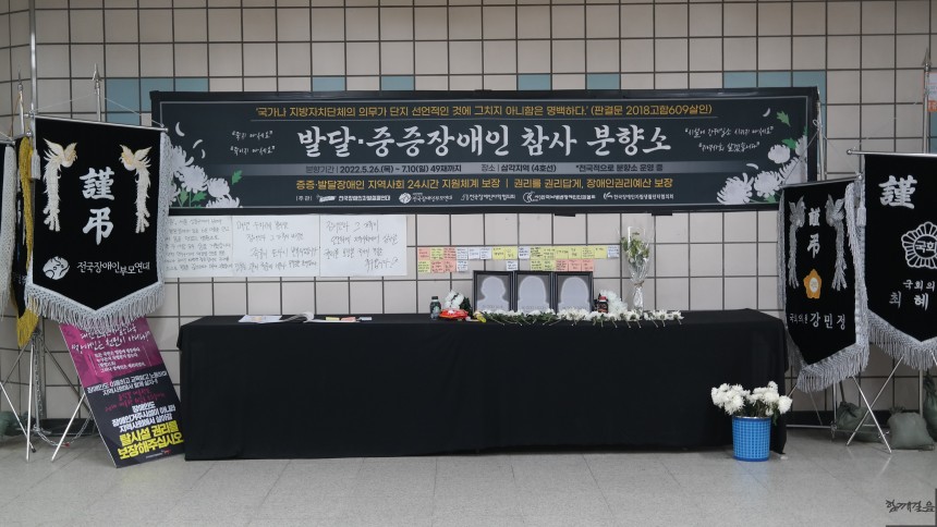 전국장애인부모연대가 서울 삼각지역을 포함한 전국 각지에 ‘발달·중증장애인 참사 분향소’를 설치해 6월 2일까지 추모 기간을 갖는다.