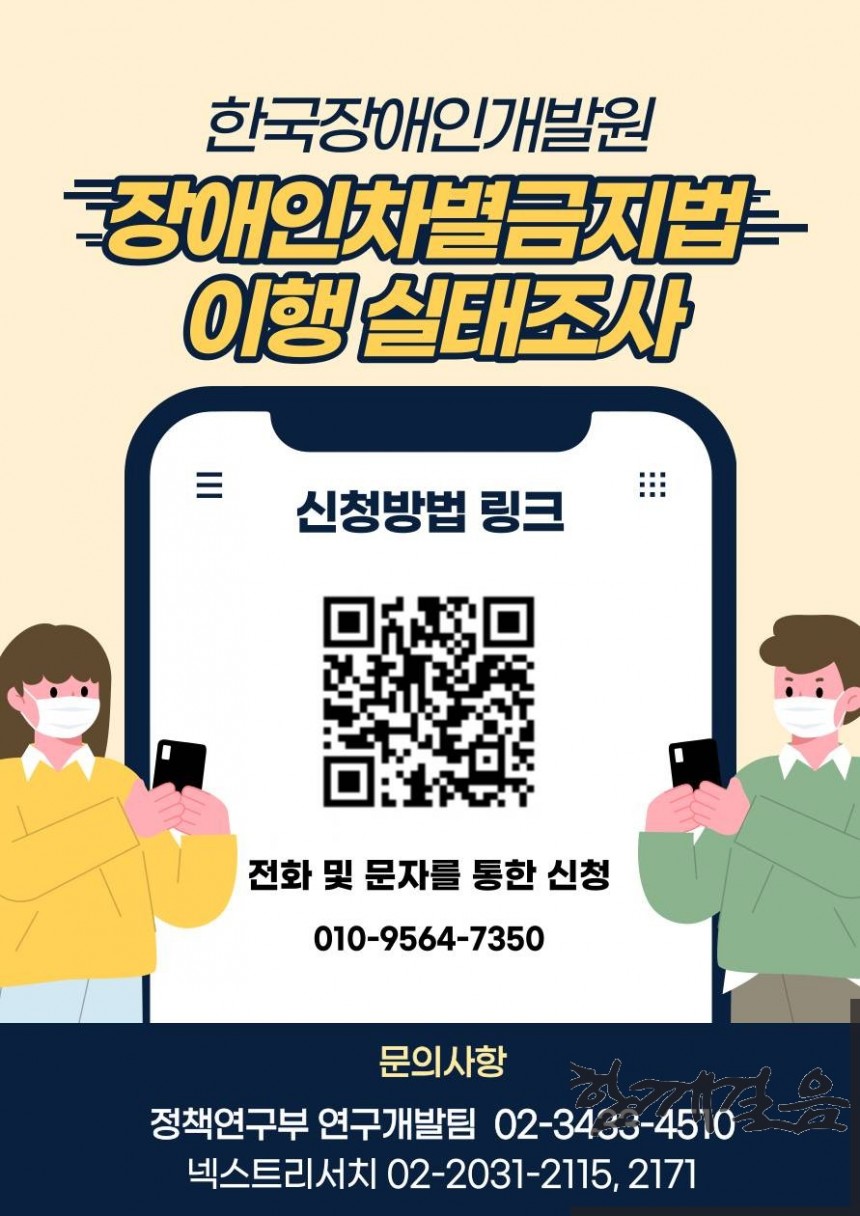 자발적인 참여를 희망하는 장애인의 경우 상단 이미지에 첨부된 QR코드를 통해 신청할 수 있다. 전화 및 문자를 통한 신청은 넥스트리서치 실사 담당(010-9564-7350)을 통하면 된다.