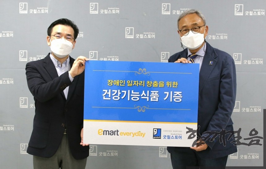 밀알복지재단 굿윌스토어(본부장 한상욱)는 이마트에브리데이(대표 김성영)로부터 장애인 일자리 창출을 위한 건강기능식품 1600만 원 상당을 기증받았다고 23일(수) 밝혔다.
