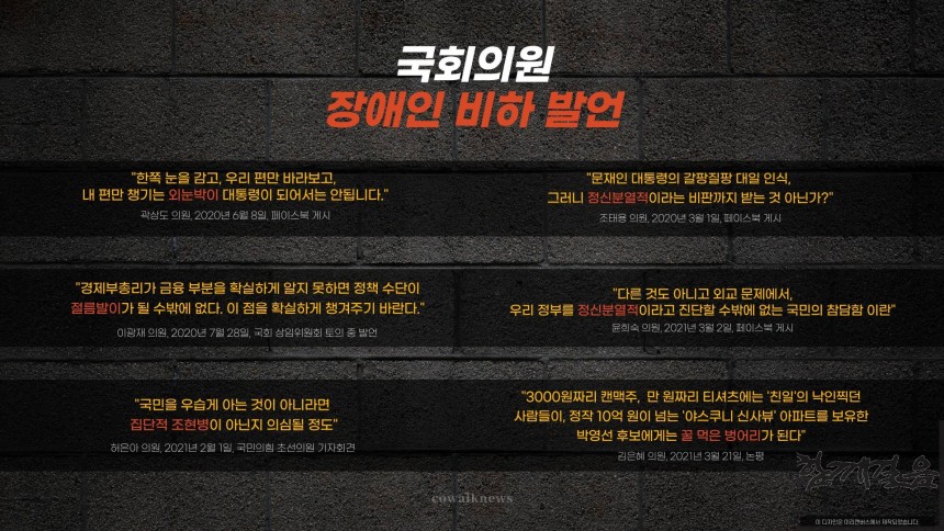 ▲ 논란이 된 국회의원들(피고)의 ‘장애인 비하 발언’ 카드뉴스.