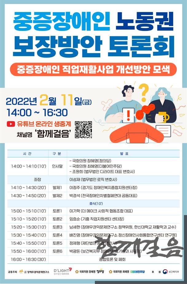 2. 11. (금) 오후 2시, 장애우권익문제연구소 ‘함께걸음’ 유튜브 채널 생중계