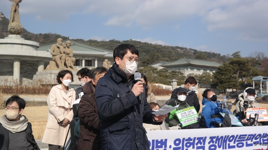 ▲ 장애우권익문제연구소 소속 김강원 국장의 발언 모습