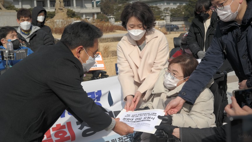 기자회견 후, 공동대책위원회는 청와대 시민사회수석실 담당 사무관에게 작년 7월에 이어 두 번째로 장애인등편의법 시행령 개정 및 개정에 대한 관계자와의 면담 진행을 요구하는 요청서를 전달했다.