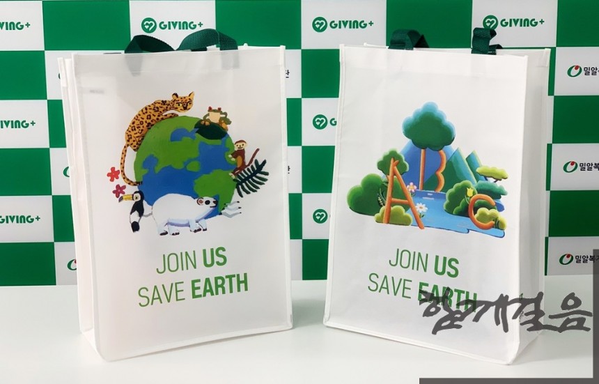 다회용 쇼핑백에는 밀알복지재단의 발달장애인 예술단 ‘브릿지온 아르떼(Bridge On Arte)’ 소속 작가들이 환경 보호를 주제로 완성한 일러스트가 담겨 의미를 더했다. 김승현 작가는 자연 풍경 속에 알파벳을 더해 환경 보호에 대한 메시지를 표현했으며, 최석원 작가는 사람들의 따뜻한 관심이 필요한 멸종 위기 동물들을 그려 넣었다.