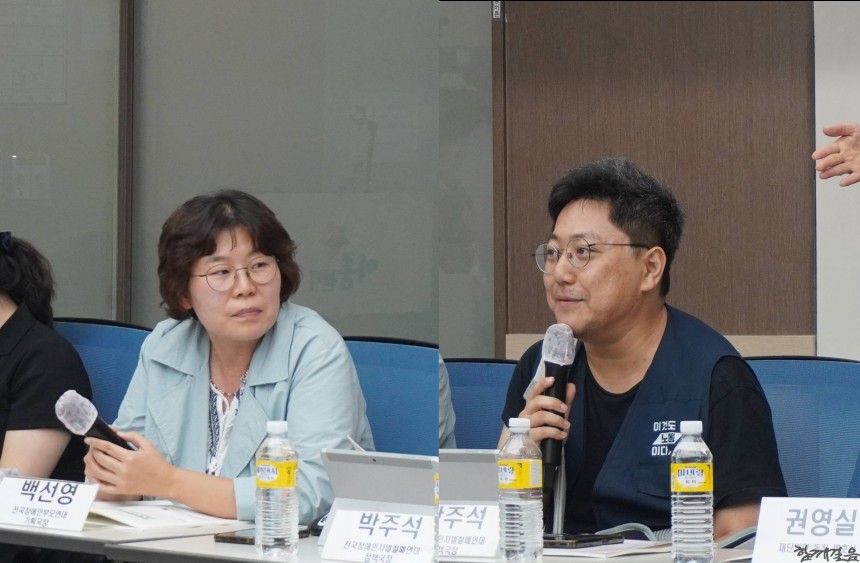 △ 발언하는 (왼쪽부터)백선영 기획국장, 박주석 정책국장