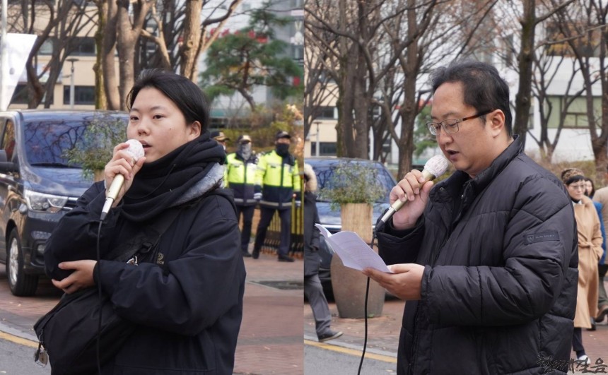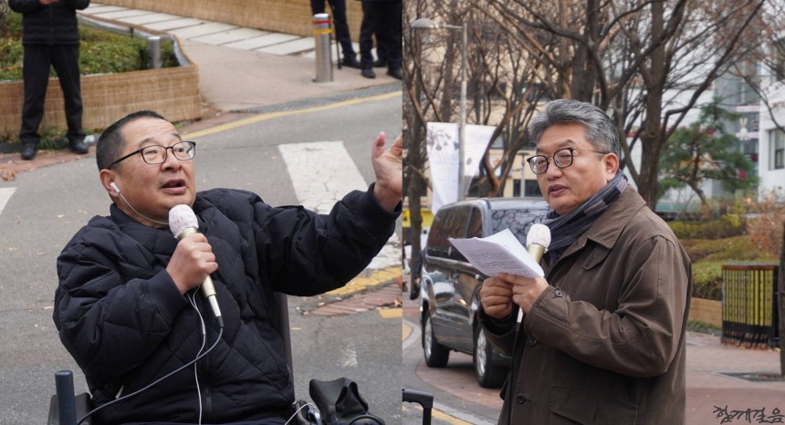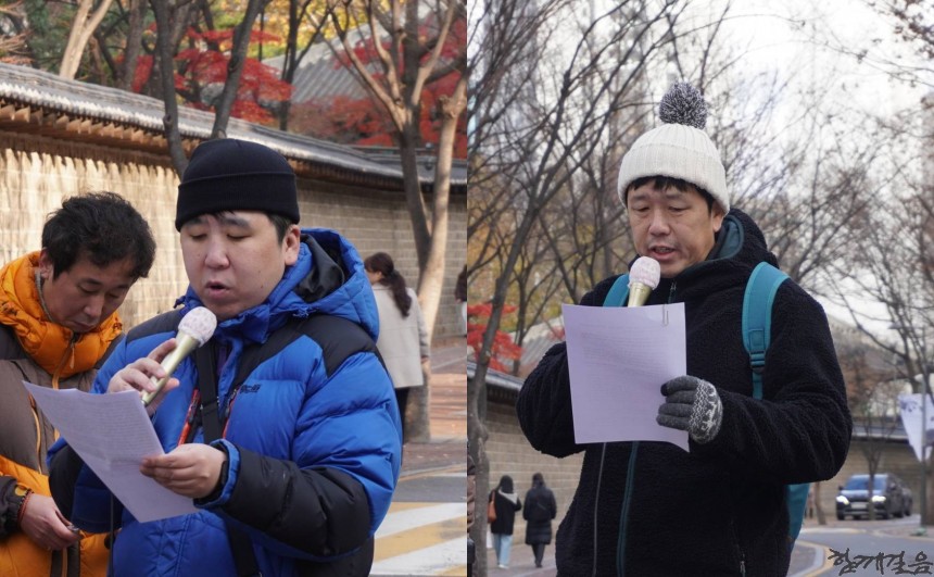△ 발언하는 이돈현 활동가(왼쪽), 김재완 활동가(오른쪽)