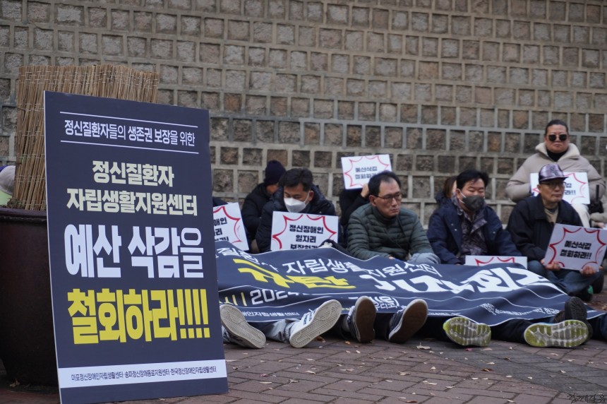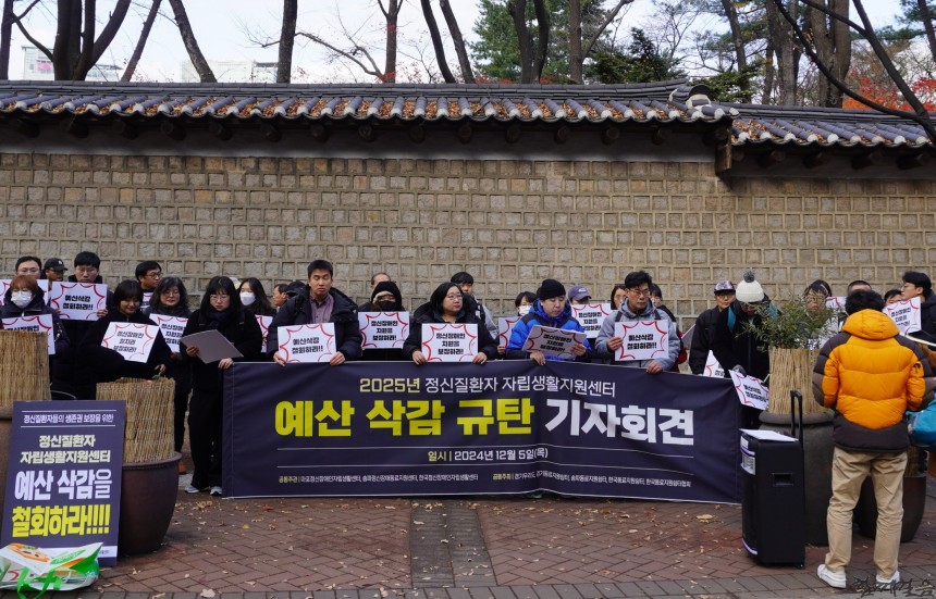 2024년 12월 5일(목), 서울시의회 회관 앞에서 서울시 정신질환자자립생활센터의 2025년 예산 삭감에 반대하고 예산 복원을 촉구하는 기자회견이 열렸다. 이번 기자회견은 마포정신장애인자립생활센터, 송파정신장애동료지원센터, 한국정신장애인자립생활센터, 경기동료지원센터가 공동 주관했으며, 센터 관계자, 활동가, 전문가 등 다양한 이들이 참석해 삭감된 예산의 심각성을 강조하며 서울시의회가 문제 해결에 나설 것을 요구했다.